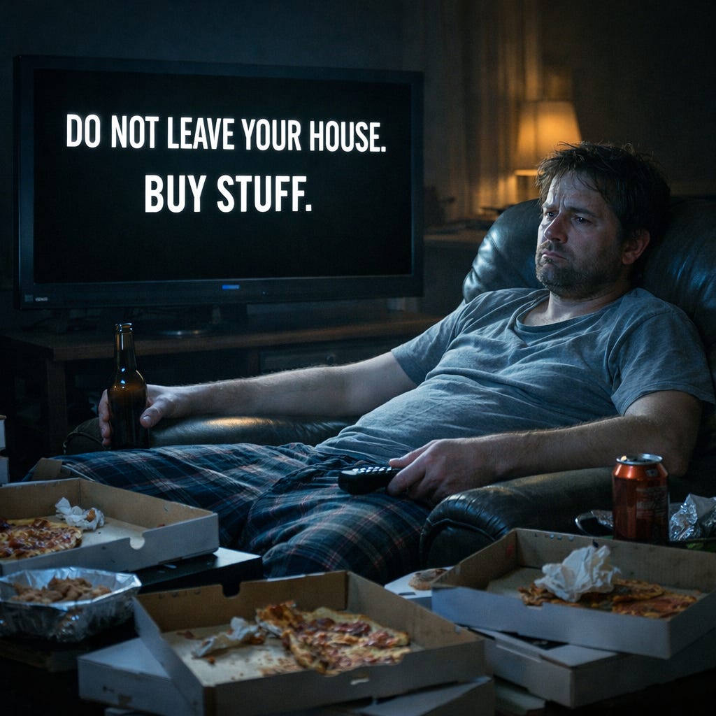 The local shop pays business rates based on an imagined rental value that bears no resemblance to its margins. The online platform pays minimal rates on a warehouse, and then works tirelessly to further minimise even that, claiming tax credits and tax relief for ‘creating jobs’. The marketplace itself, the thing that actually extracts the value, sits comfortably outside the property tax system altogether. This is not a design flaw. It is the system doing exactly what it was built to do. Every review of business rates that pushes down reliefs and pushes up rateable values but somehow manages to avoid meaningfully taxing digital value is reinforcing the same outcome. Physical businesses weaken, online dominance grows. Prices fall. Convenience increases. Job security gets ignored. Groceries get cheaper. Groceries get faster. Groceries get delivered to your door while the places people used to meet quietly disappear. Hooray, the system is working. Shame nobody has any work anymore and that everyone is lonely and we have a huge mental health crisis and a gathering storm of debt, alcohol addiction, and an endless future of human misery. But hooray… cheap groceries delivered to your door.